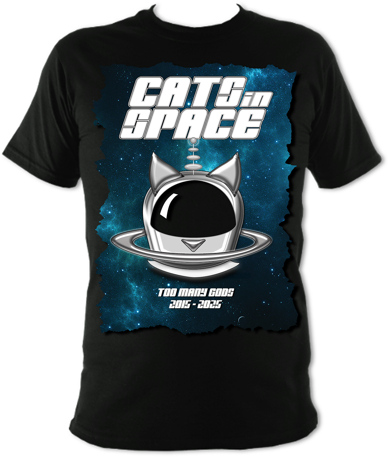 Don’t miss out on the CATS in SPACE 10 Year Anniversary Too Many Gods Tour Tee. These fan favourites are flying off the shelves at our Merch stall during the UK Tour 2025 - get yours while you still can!